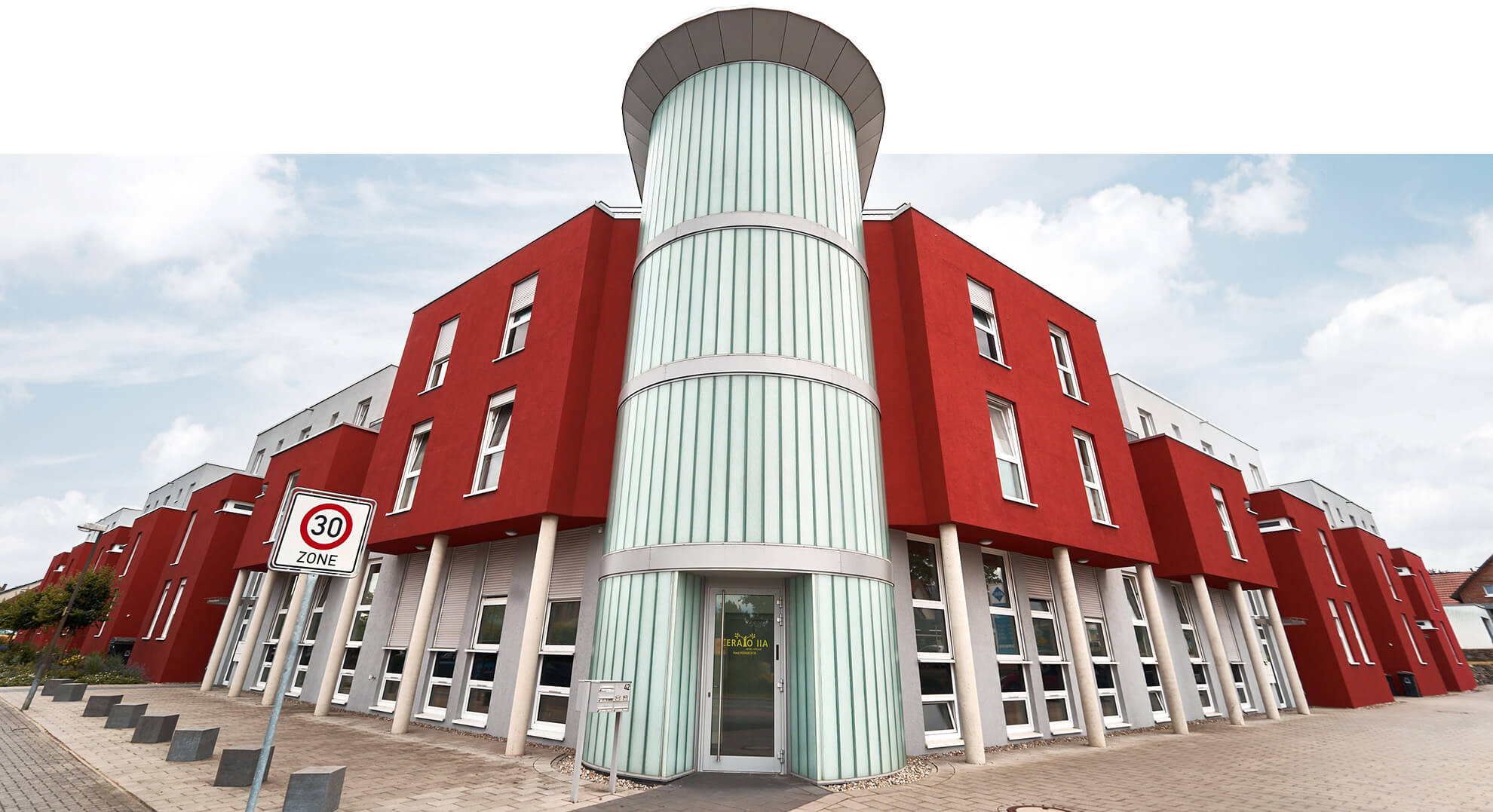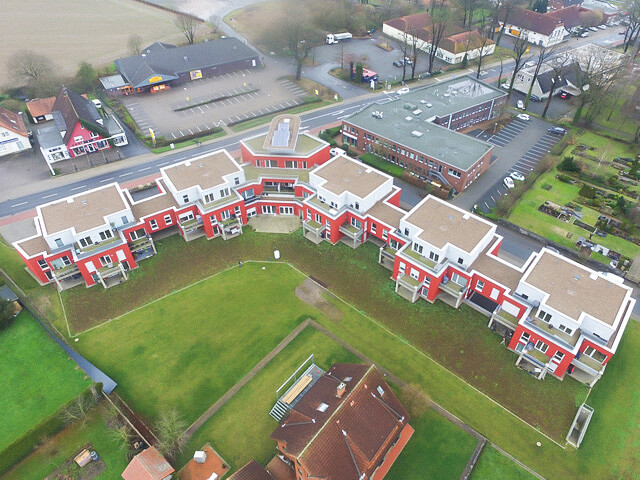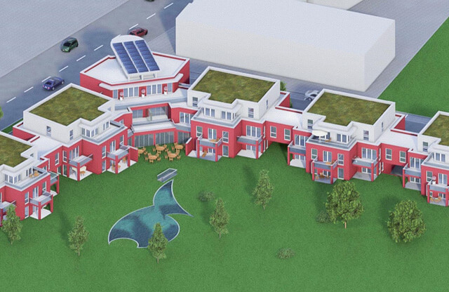 Unser Projekt „Hüggeleck“ wurde 2016 fertiggestellt und umfasst 6 Gebäude die den Kreuzungsbereich Osnabrücker Straße / Sandstraße in Hasbergen durch eine moderne Architektur verbindet. Die 32 Wohnungen inkl. Tiefgaragenstellplätze wurden vermarktet. Die Räume der Pflegeeinrichtung sowie weitere Tiefgaragenstellplätze und Parkflächen sind vermietet.